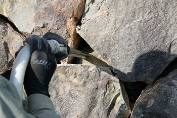 MORUDAM工法(石積接着補強工)は、既設の石積みの内部に優れた接着性を有する石積み専用充填剤を注入することによって補強する工法です。